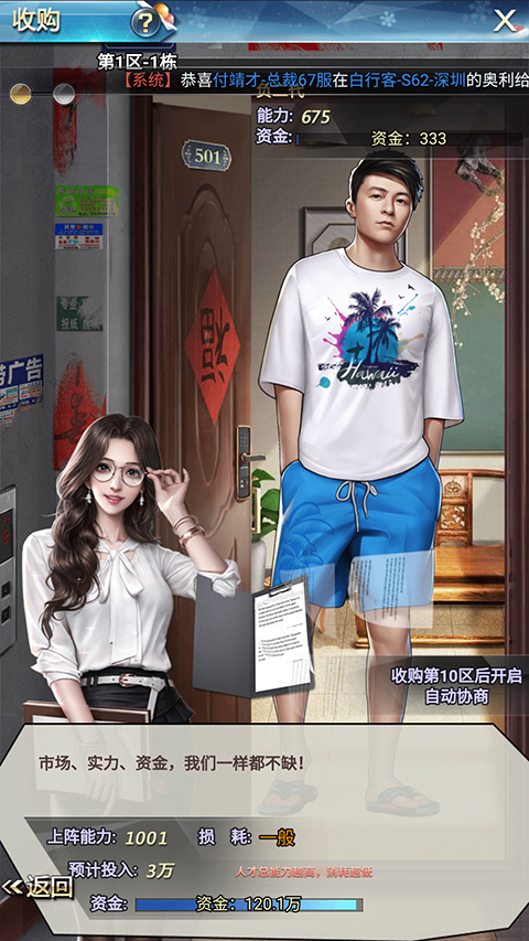 1、人才招募与培养:玩家可以广纳各行各业的人才,培养自己的运营管理团队。通过升级、提供秘籍等方式提升人才能力。