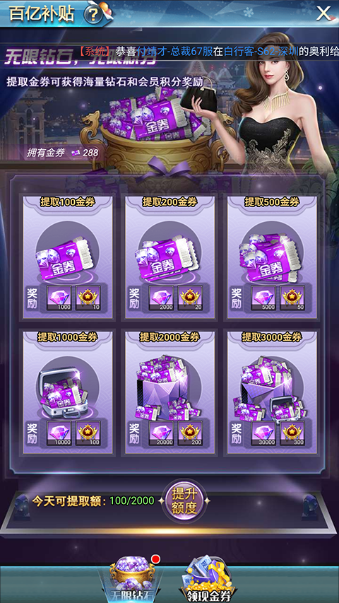 除此之外,为了让玩家在谁是首富游戏中玩的更为舒适,即游戏内提供了大量的游戏福利,无论是购买礼包需要的代金卷,还是购买道具需要的钻石,统统免费赠送,更有超强跑车和助手等待玩家的领取和招募。对此,有感兴趣的小伙伴不妨来体验一下。
