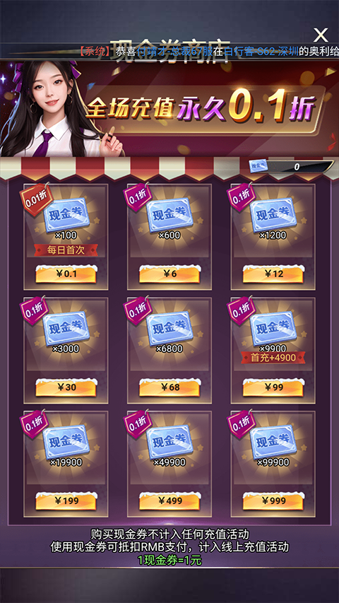 1、真实折扣,进入游戏即可享受永久0.1折扣福利。