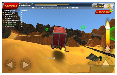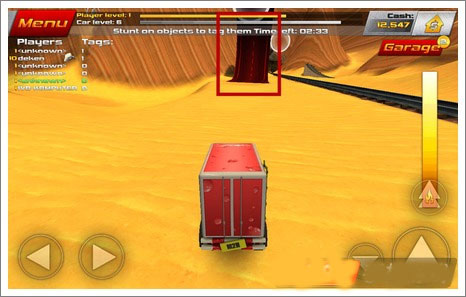 2、游戏跑道上会有一个个跨越台,玩家们操控赛车行驶上这些跨越台,完成跨越,每跨越一次都会有加分哦。