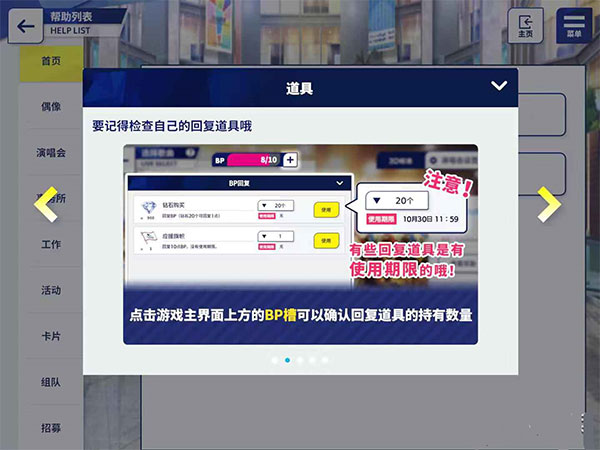 BP:演唱会所需要消耗的体力,每30分钟恢复一点。