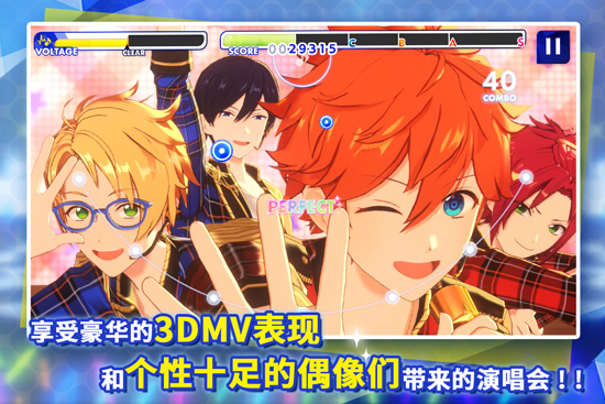 玩家可以在这个模式中以超真实3D角色的演唱会场景为背景,体验节奏音游,四种难度供你选择,不论是手残党还是音游高手,都能找到你的Stage!与此同时,还能享受豪华的3D MV表现和个性十足的偶像们带来的演唱会!