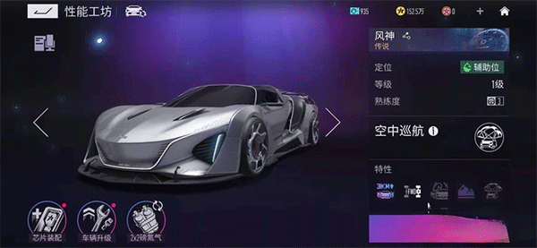3、当我们完成升级后,车辆性能不仅能得到提升,还能解锁车辆的新特性。当战神达到2级,就能解锁尾流,4级能解锁2阶氮气的选装。
