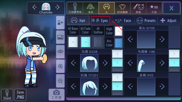 3、然后玩家可以根据自己喜好来选取角色眼睛;