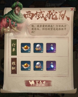 商铺地图上会不定时有骆驼车队的贸易。一定要屯好一些资源用来贸易。稳赚不赔的。