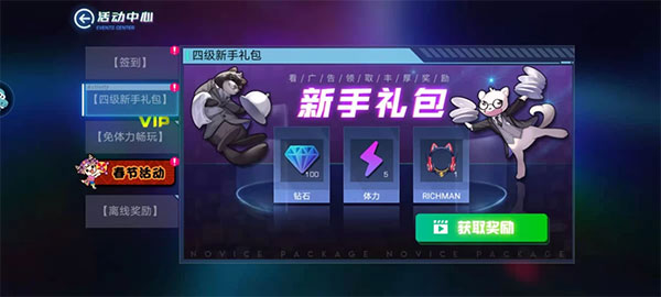 钻石也可以通过奖杯奖励得到、每日签到,每日抽奖还有升级等级能获得的新手礼包,还有通过离线时长也能获得钻石,每次离线后去活动中心最下方就可以获得到钻石奖励。