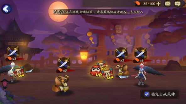 经验翻倍妖怪不足三个,全是金钱妖怪,这种情况不适合刷狗粮,遇到这种情况我们可以左上角退出,不会影响到体力。