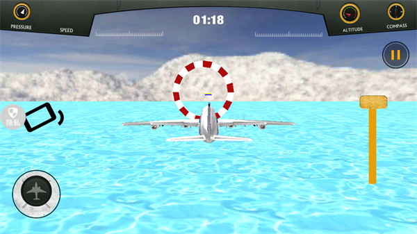 6、游戏中玩家需要控制飞机来穿行圆圈,每穿过一个都会获胜相应分数;