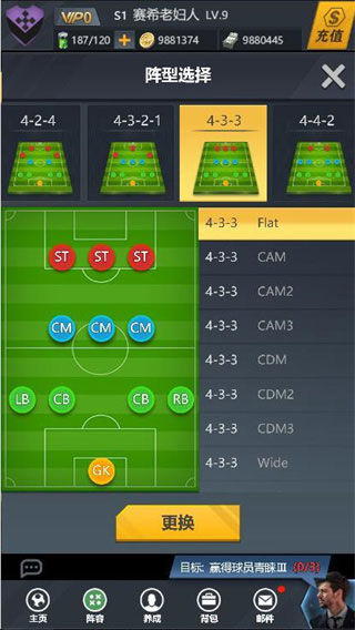 2、还有着阵容设定可以合理的去进行搭配前锋、中卫、守门等,这些游戏玩法非常真实。