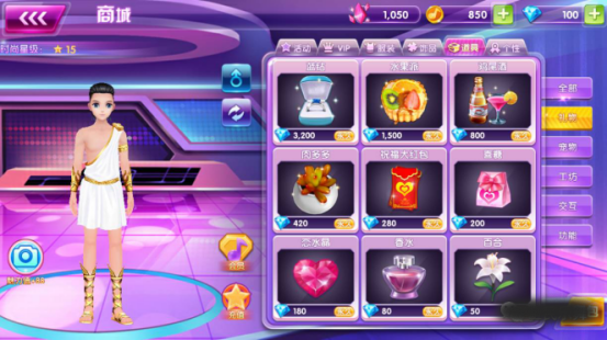 道具包括跳舞、交互、礼物、活动、图纸、其他等类别