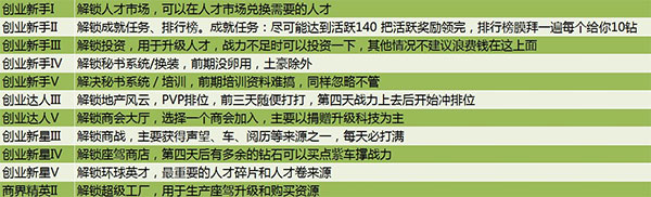 4、人才实力主要来源于:人才、升星、车等。我们可先从升人才等级下手,金币主要来源:推主线,投资等。这里我推荐:先推主线,如果实力不够再去搞车,然后升星。前面几种没有办法再升时再选择投资。