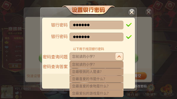 5、设置银行密码以及密保;