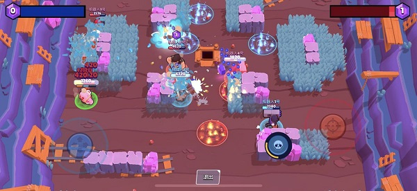 BrawlStars分为人机对战和实时对战模式。你既可以随机选择在线玩家组队,也可以创建房间,邀请好友一同开战。第一次进入荒野乱斗腾讯版游戏会有玩家新手指导,游戏采用虚拟摇杆加按键操作,左手控制方向,右手点击敌人瞄准攻击,每三个人组成一个战斗小队。操作非常简单。