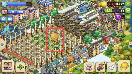 1、首先,当我们每天第一次打开游戏登录之后,用手指在屏幕上点住一个点移动可以看见不同的区域,然后可以找到一个像热气球一样的东西。点击这个漂浮的东西可以获得奖励,有时候是会出现社区建筑完成所学的材料的。