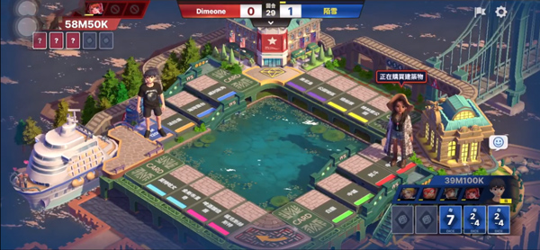2、游戏的玩法和经典的大富翁等桌面游戏类似,玩家需要掷骰子来决定你的棋子角色前进的步数。