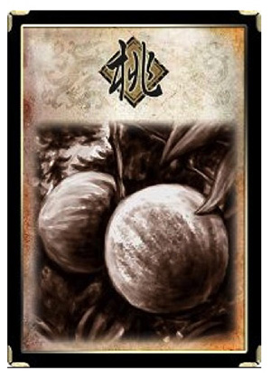 3、【桃】桃子算上军争也就是12个,十分珍贵,一般四血武将在三血的时候都要考虑不吃,因为很可能有人比自己更需要,但是两血一般就不要得瑟了,再有个牵羊什么的二分之一的概率是不小的。当然你满血有桃子当然要存了,2血存桃一定要在极度危机情况下,1血存桃常见于忠臣为快要让人平了的主公藏的。