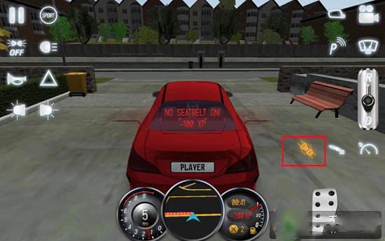 驾驶车辆的时候,如果已经有驾照的朋友们应该知道,首先要做的就是系安全带,在屏幕右下角安全带图标成黄色灯,表示安全带没有系好,我们要点击它系好安全带。如果不系安全带,屏幕中会提升我们减去100的经验值。