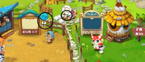 4、在动物头顶位置的地方,提示可收获,则点击下方的收获,在点击动物即可收获。如点击全收,则点击一下可收获的动物,即可把可收获的动物全部回收了。