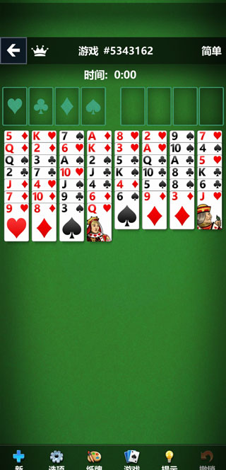 使用四个额外的中转单元进行移动,尝试清空桌面上的所有牌。FreeCell 比 Klondike 版本更需要策略思考,适合善于提前想好多步的玩家。