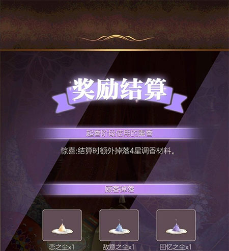 5、结算:根据玩家熏香使用的正确与否提供相应的调香材料掉落。