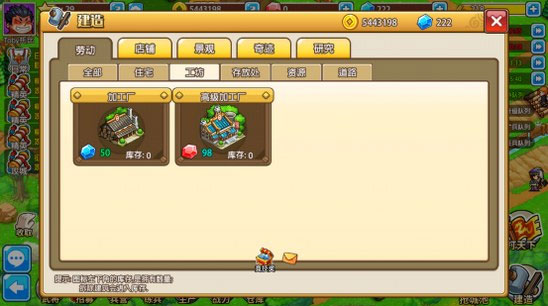 3、在收获了资源后,我们肯定不能直接把东西不仅加工的直接拿去售卖,这时候就需要工坊来将基础的材料制作成各类商品啦!