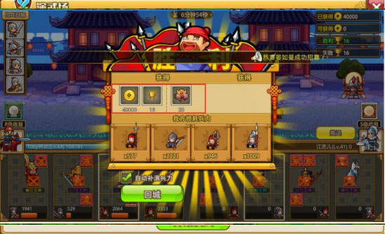 1、村长大人们可以在村庄界面下部点击【招募】→【武将】进入武将招募界面。每次招募都会额外赠送金币。