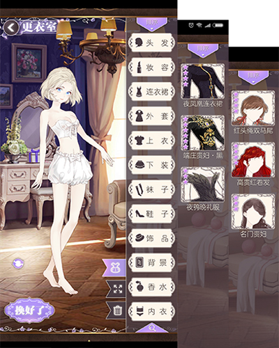 在欧洲宫廷风格服装的基础上,结合现代时尚设计,已生产出数千种风格各异的服装部件。您需要为各种舞会和社交场所精心搭配自己的服装,展现自己的风格,赢得人们的尊重和爱戴,实现自己的使命,同时与自己喜欢的男女角色建立更深的纽带。