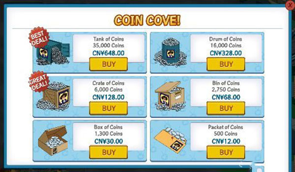 这一方法就是土豪通道啦,通过人民币来获得银币,但是此方法只适用于土豪哦,因为内购的数额是比较大的,就怕一般的屌丝级玩家没有相应的经济实力哦,所以小伙伴还是通过实际的劳动获得吧!