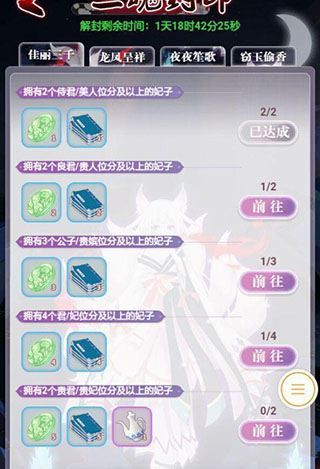 好了,去掉V11,我们来看充值月卡的话,我们应该怎么合理的利用元宝。首先,你要有个小QQ,这个QQ用来给自己养孩子,可以专宠你的孩子,可以生出比较优质的妃子,可以指定给你。这样你使用60元聘礼就可以有个强大的妃子。图片能看到根据妃子和孩子的宠爱不同,每次回省可以得到的东西不同,所以有一个小号是很必要的,同时那些攻略祝融,嫦娥,等等系统侍从的都是不可取的。无论你多宠爱他们,他们首先都不能回省,其次他们都没有人物技能,后期你会发现你的后宫都是有着双技能的妃子,你前期花费了大量精力以及元宝来弄的系统攻略人物他们对于你都变成了浪费。