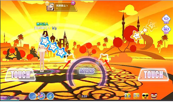 星愿模式采用类似“节奏大师”按键掉落式玩法,屏幕上会有彩色星星随着节奏掉落,当星星掉落到指定位置,触碰touch键即可得分。