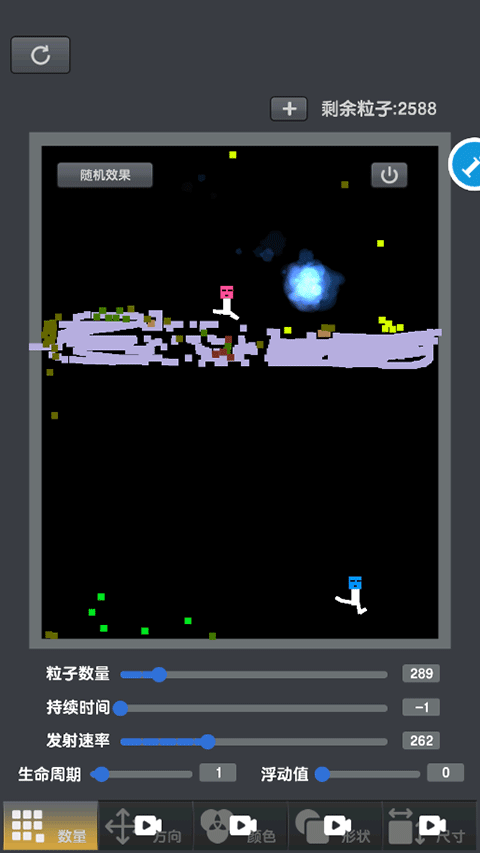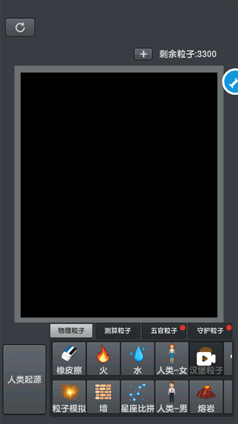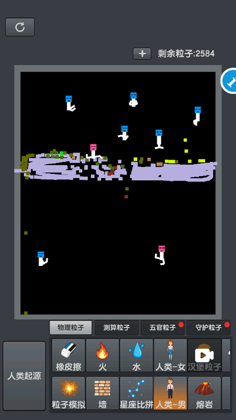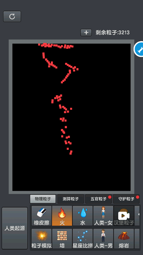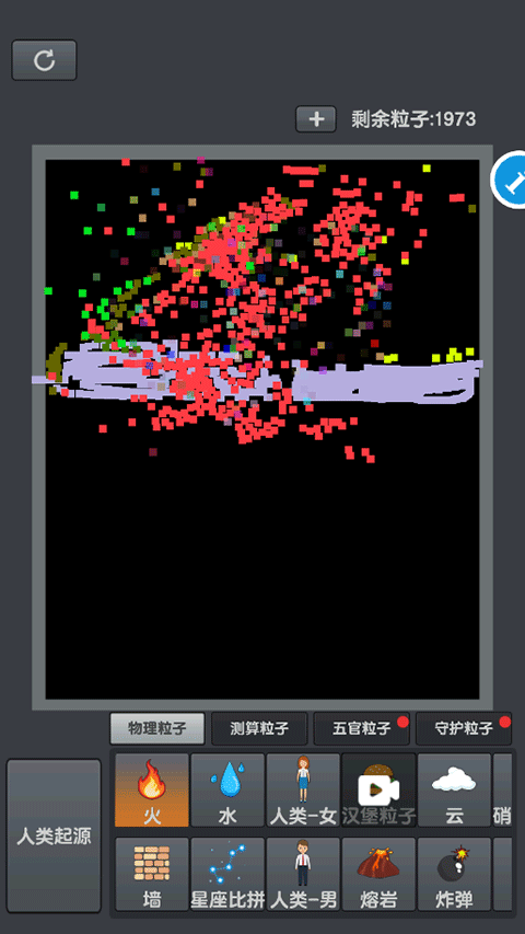 1、首先打开粉末沙盒模拟器,在下方提供了很多的粒子可以创造模拟,包括了物理、测算、五官粒子等等;