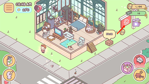 值得一提的是,屋内温馨满满,屋外的背景也不是摆设,Pocket Love的游戏内容不仅限于房间内,街边偶尔会刷新小老鼠、纸屑、苍蝇等物件,玩家只需要通过点击进行清除,就可以获得相应的金币奖励。同时,偶尔路过的NPC还会向玩家询问是否要出售家具、是否需要接受推销等玩法,很真实地丰富了屋外的世界,给玩家营造了一个非常温馨舒适的氛围。如果你也喜欢装扮自己的角色、喜欢打扮温馨的小家,那么请一定不要轻易错过Pocket Love这款游戏了。