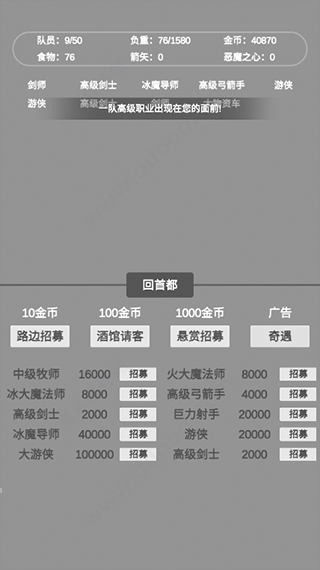 5、因此可先去招募剑士、游侠、射手、弓箭手、魔法师等角色来帮助你才行