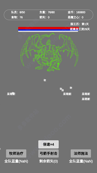 4、出发,去城外打到恶魔!开局招募队员,购买食物,出征狩猎,打败恶魔,走上人生巅峰!