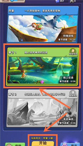 2、接着,选择要进行冒险的章节,并点击下方的开始进入。
