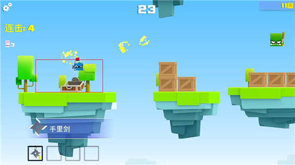 游戏里面你可以获取到宝箱,免费的宝箱中会有击杀敌人的武器,比如斧头,矛,火箭,炸弹等等,每个地方切换不同的武器,会让你前进的更加顺利。收费道具包括头盔,星星,皇冠,晶块等等,买到不同的头盔能够使用到不同的武器,确实有点意思,皇冠可以用来复活,解锁宝箱等等。
