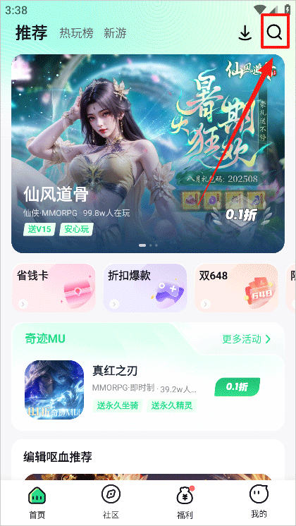 2、精准搜索筛选:设有便捷搜索栏,玩家输入游戏名称、类型关键词,能精准定位目标游戏。同时提供丰富筛选条件,依游戏热度、上线时间、付费类型等筛选,从海量游戏里高效找到想玩的内容。
