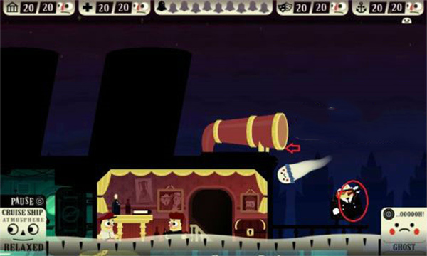 具体做法:幽灵附体箭头指向的黑色瓶子,然后用圆圈出的按钮,不好意思,英文不好,不认识,然后瓶子爆炸,厨师带走。