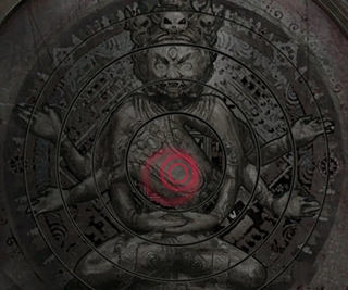 根据提示将收集到的道具放在佛像的手里,左手:上无面铜人、下红蜡烛;右手:上芭蕉叶、下死蝼蛄,中间照片。完成后第二章结束。