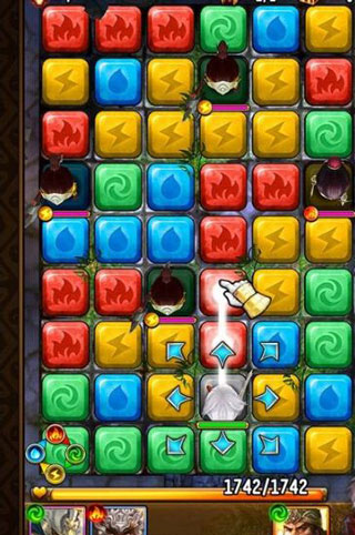 4、战斗系统,在玩家角色週边将同颜色的方块连上,角色就会跟随其路径而行,途中经过怪物就会向他们攻击一次。