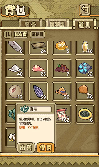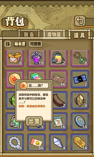 玩家可以根据道具的描述获取来源中来获取相应道具,白色品质的道具材料最容易刷出来,绿色次之,蓝色和紫色基本都需要探索和金币/氪金购买来获得。