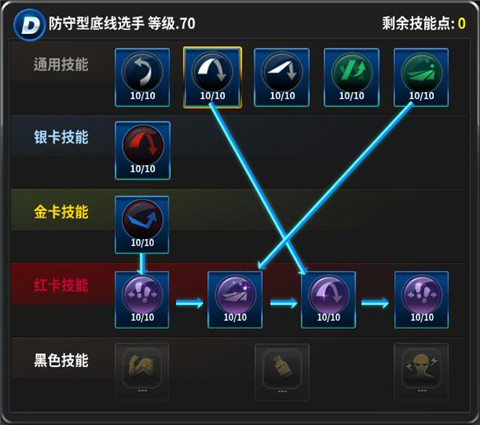 三种球员类型技能图片参考,技能相互之间《连线的地方》为《前置技能》