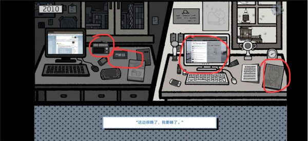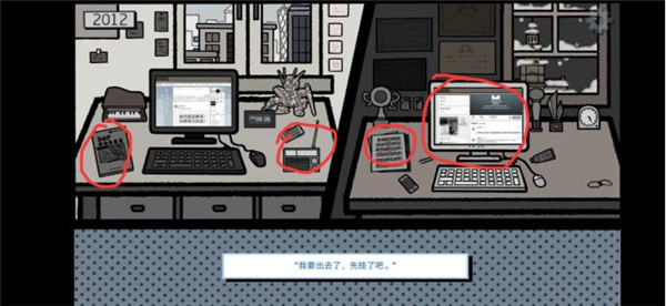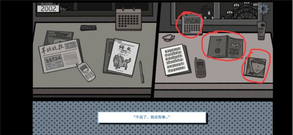 8、接下来点击桌面上的小物件过剧情,像“不说了,还有事…”这种话一次都不要点。