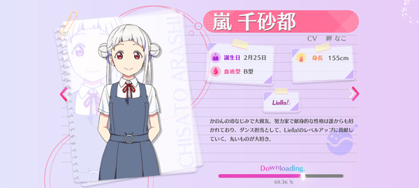3、数据下载过程中,玩家可点击屏幕左右箭头查看游戏内偶像角色介绍;