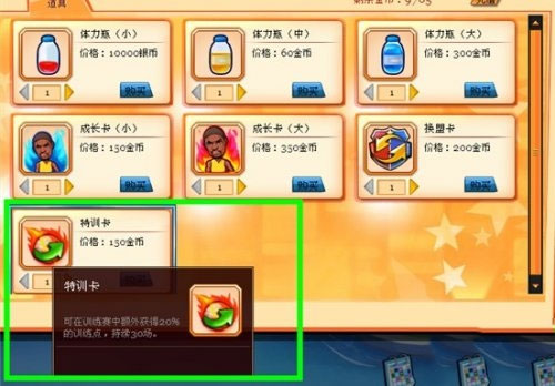 如果你还是觉得训练点增加太慢,可以尝试商城中的特训卡,使用后,可以在训练赛中额外获得20%的训练点,效果持续30场,