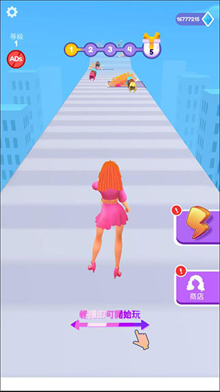 5、然后我们点击并按住屏幕,这样可以放下我们的长发,这么做的目的是为了计算通关后的奖励。