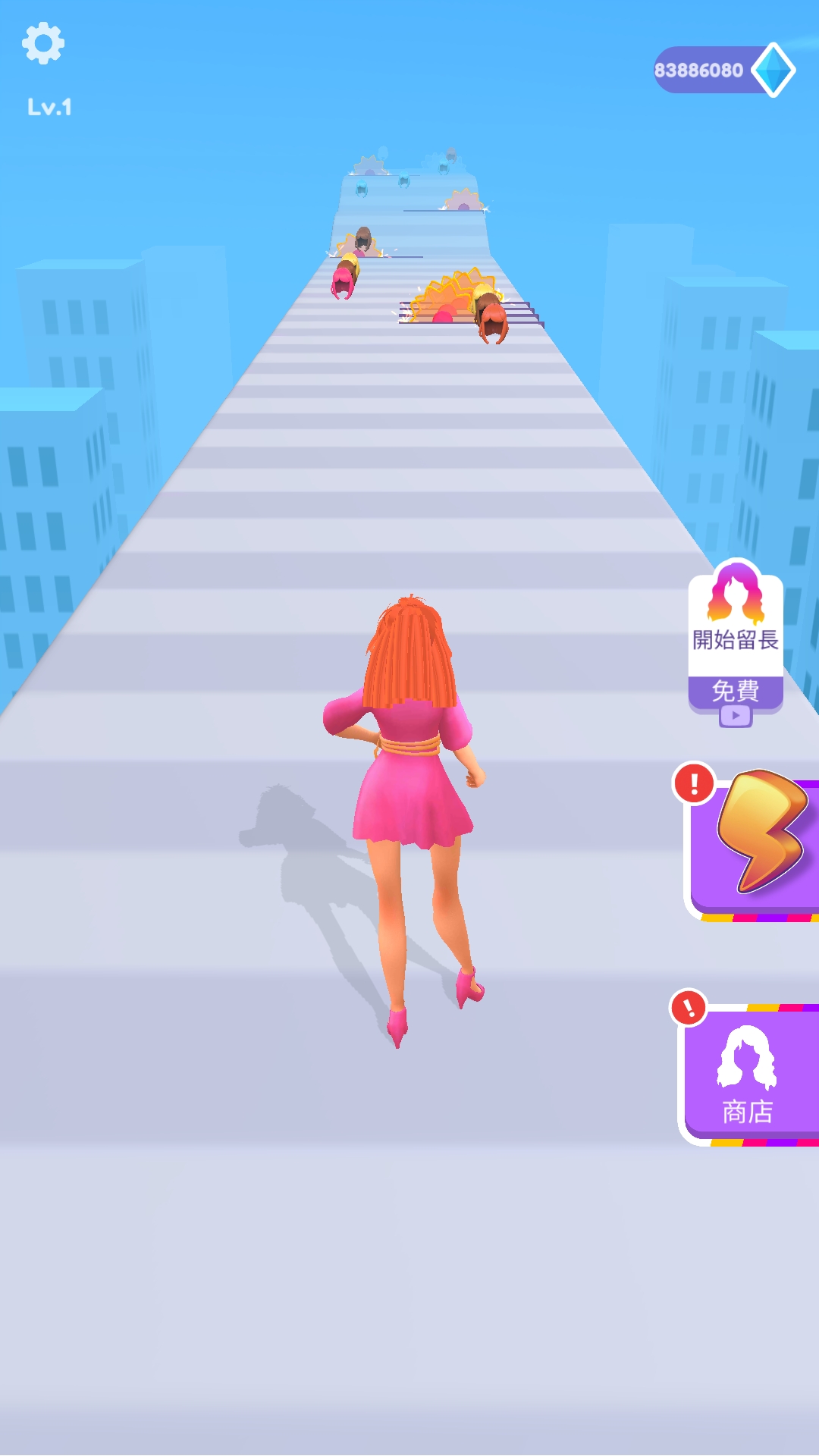 除此之外,在头发挑战赛游戏中的玩法可以说说非常的简单,玩家只需要注意躲避地上的轮锯,已免自己的头发被碰到被割断,因为这个是会影响到最后的分数评定的,同时在这里还可以选择自己喜欢的头发、发色的哦,一切都是可以安装自己的想法进行选择,海量的关卡,让你根本停不下来。
