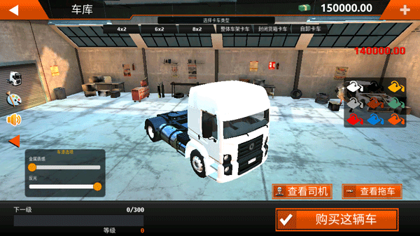 4、点击车库,拥有各种类型的卡车,玩家可以根据自己的兴趣或车辆的属性来选择购买;