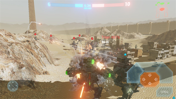 2、进入游戏后你需要摧毁各种设施,左手轮盘控制行走,右手轮盘能控制射击、加速、技能;