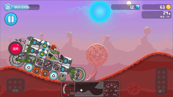 暴爽疯狂赛车九游版是一款卡通风格的赛车闯关类小游戏,该游戏画质十分不错,在这里玩家可以自由更改赛车的配置,为赛车添加各种道具,模拟赛车的前进和后退,感受到真实的操作手感,通过各种不同难度的赛道。玩法也是非常的简单,有点像是我们玩过的登山赛车小游戏,不过在这里玩家可以购买各种配件,甚至还有反应堆、涡轮等配件,为你的赛车进行改装,让你的赛车逐渐离谱起来,每个关卡的路上都有各种各样的困难,我们要依靠自己的技术能力克服,让自己安全的抵达关卡终点,得到更高的分数。